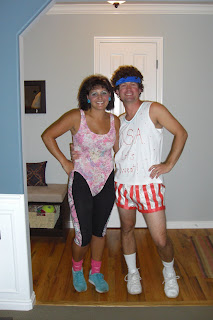 Toby and Danielle had a Halloween party for Toby and Randy's birthday's last Saturday. It was so much fun to get dressed up and go to a fun party. As you can see everyone went all out, my friends costumes were pretty funny. I especially loved "Richard Simmons" (Randy), I couldn't stop laughing at him and Kari as they kept doing their stretches all night!